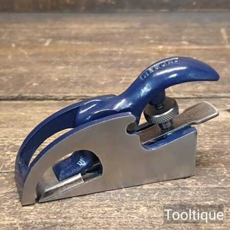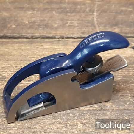 When refurbishing planes, we do not merely clean them to make them look good, they are restored to a level that ensures this plane is actually ‘in plane to within 0.01mm’ sharpened, honed and all the components are thoroughly cleaned so that they move freely. Our planes are specifically reconditioned to satisfy professional tradesmen who will instantly know the difference between buying one of our planes over general other used ones.
