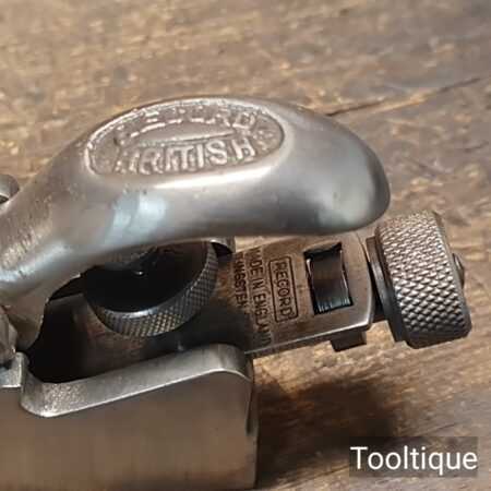 Vintage Record No: 077A Bullnose Plane with a Detachable toe piece, fully refurbished ready for use and in good used condition. When refurbishing planes, we do not merely clean them to make them look good, they are restored to a level that ensures this plane is actually ‘in plane to within 0.01mm’ sharpened, honed and all the components are thoroughly cleaned so that they move freely. Our planes are specifically reconditioned to satisfy professional tradesmen who will instantly know the difference between buying one of our planes over general other used ones.