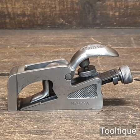 Vintage Record No: 077A bullnose plane fully refurbished ready for use and in good used condition. When refurbishing planes, we do not merely clean them to make them look good, they are restored to a level that ensures this plane is actually ‘in plane to within 0.01mm’ sharpened, honed and all the components are thoroughly cleaned so that they move freely. Our planes are specifically reconditioned to satisfy professional tradesmen who will instantly know the difference between buying one of our planes over general other used ones.