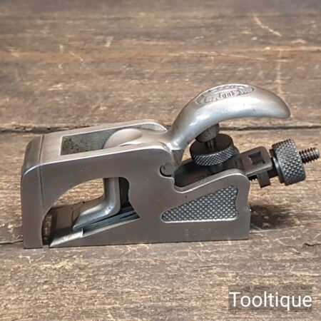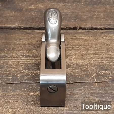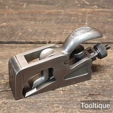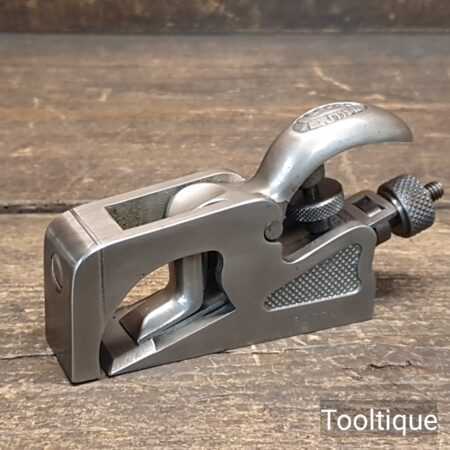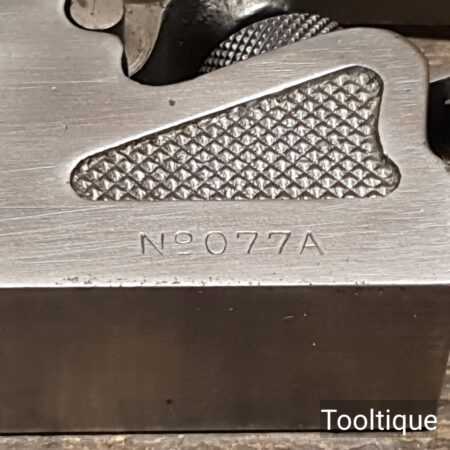 Vintage Record No: 077A Bullnose plane, refurbished ready for use and in good used condition. Note: Iron length is approx ¼” short of full length. When refurbishing planes, we do not merely clean them to make them look good, they are restored to a level that ensures this plane is actually ‘in plane to within 0.01mm’ sharpened, honed and all the components are thoroughly cleaned so that they move freely. Our planes are specifically reconditioned to satisfy professional tradesmen who will instantly know the difference between buying one of our planes over general other used ones.