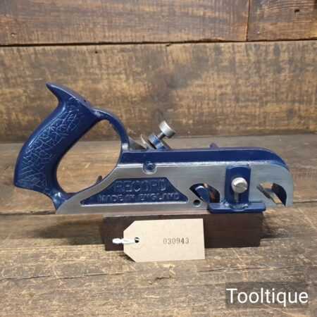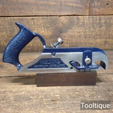 Vintage Record No: 078 duplex rabbet plane refurbished ready for use and in good used condition. When refurbishing planes, we do not merely clean them to make them look good, they are restored to a level that ensures this plane is actually ‘in plane to within 0.01mm’ sharpened, honed and all the components are thoroughly cleaned so that they move freely. Our planes are specifically reconditioned to satisfy professional tradesmen who will instantly know the difference between buying one of our planes over general other used ones.