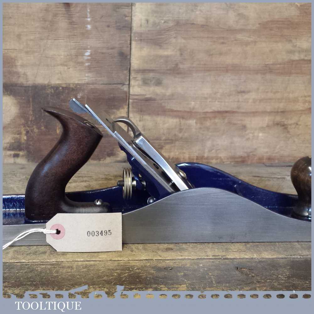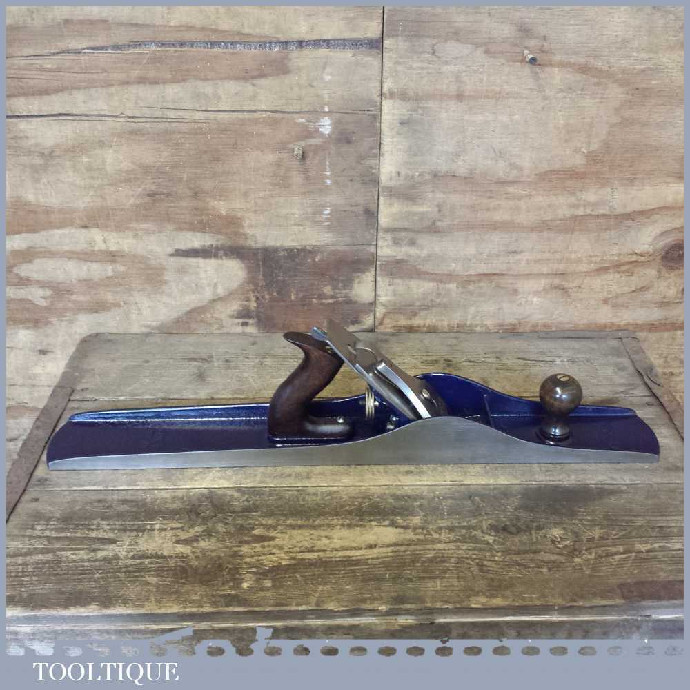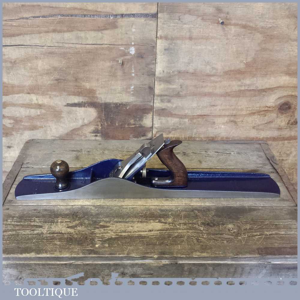 When refurbishing planes we do not merely clean them to make them look good, they are restored to a level that ensures they are actually ‘in plane’ sharpened, honed and all the components are thoroughly cleaned so that they move freely. Our planes are specifically reconditioned to satisfy professional tradesmen who will instantly know the difference between buying one of our planes over general other used ones. Our aim with reconditioning these planes as we do is to reduce tear out by refining the plane so it can be set up to take a very fine shaving. For new woodworkers: Note that we also refine the set up of the chipbreaker which is often neglected in other planes giving you the best possible start.