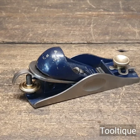 Vintage Record No: 09 ½ Adjustable Throat Block Plane, refurbished ready for use and in good used condition. When refurbishing planes, we do not merely clean them to make them look good, they are restored to a level that ensures this plane is actually ‘in plane to within 0.01mm’ sharpened, honed and all the components are thoroughly cleaned so that they move freely. Our planes are specifically reconditioned to satisfy professional tradesmen who will instantly know the difference between buying one of our planes over general other used ones.