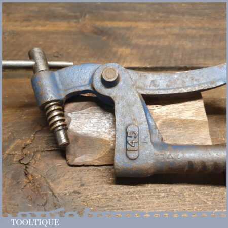 Vintage Record No: 145 bench holdfast clamp complete with locking collar, in good used condition and ready for use.