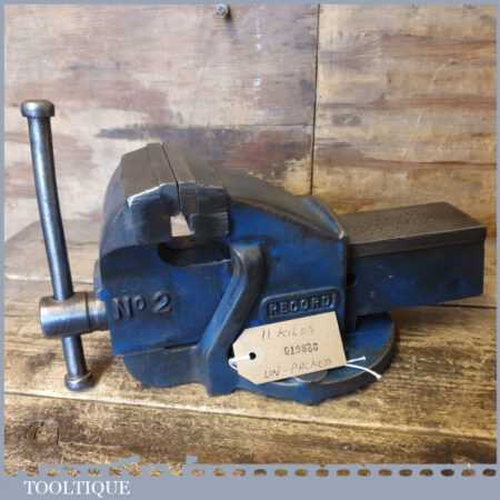 Vintage Record No: 2 engineer’s cast steel bench vice with 3 ½” jaws in good used condition.