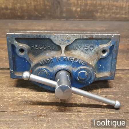 Vintage Record No: 50 Cast steel bench vice with 6″ jaws in good used condition.