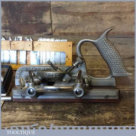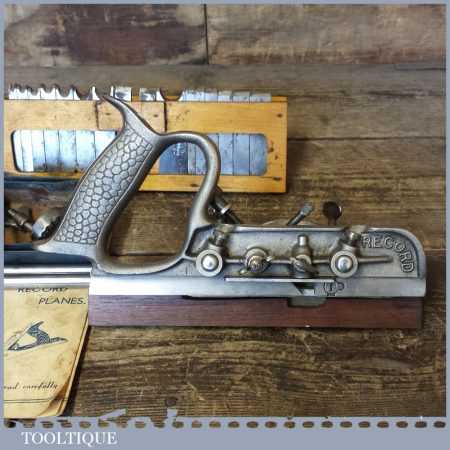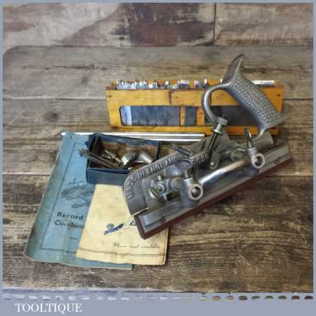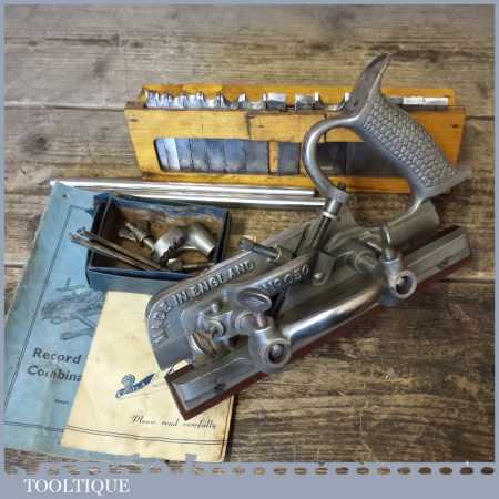 Vintage Record No: 50a combination plough plane in good used condition. The plane has been cleaned and all parts move freely. Note: We do not sharpen the cutters on these planes.