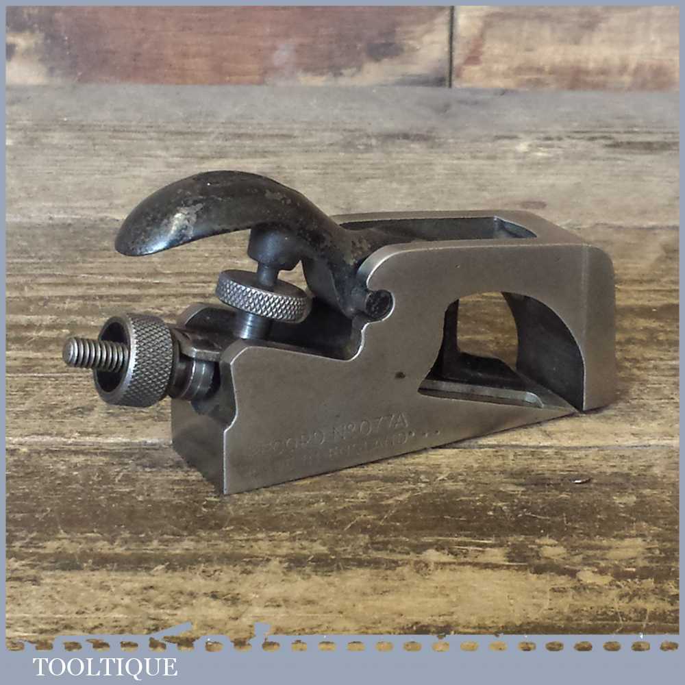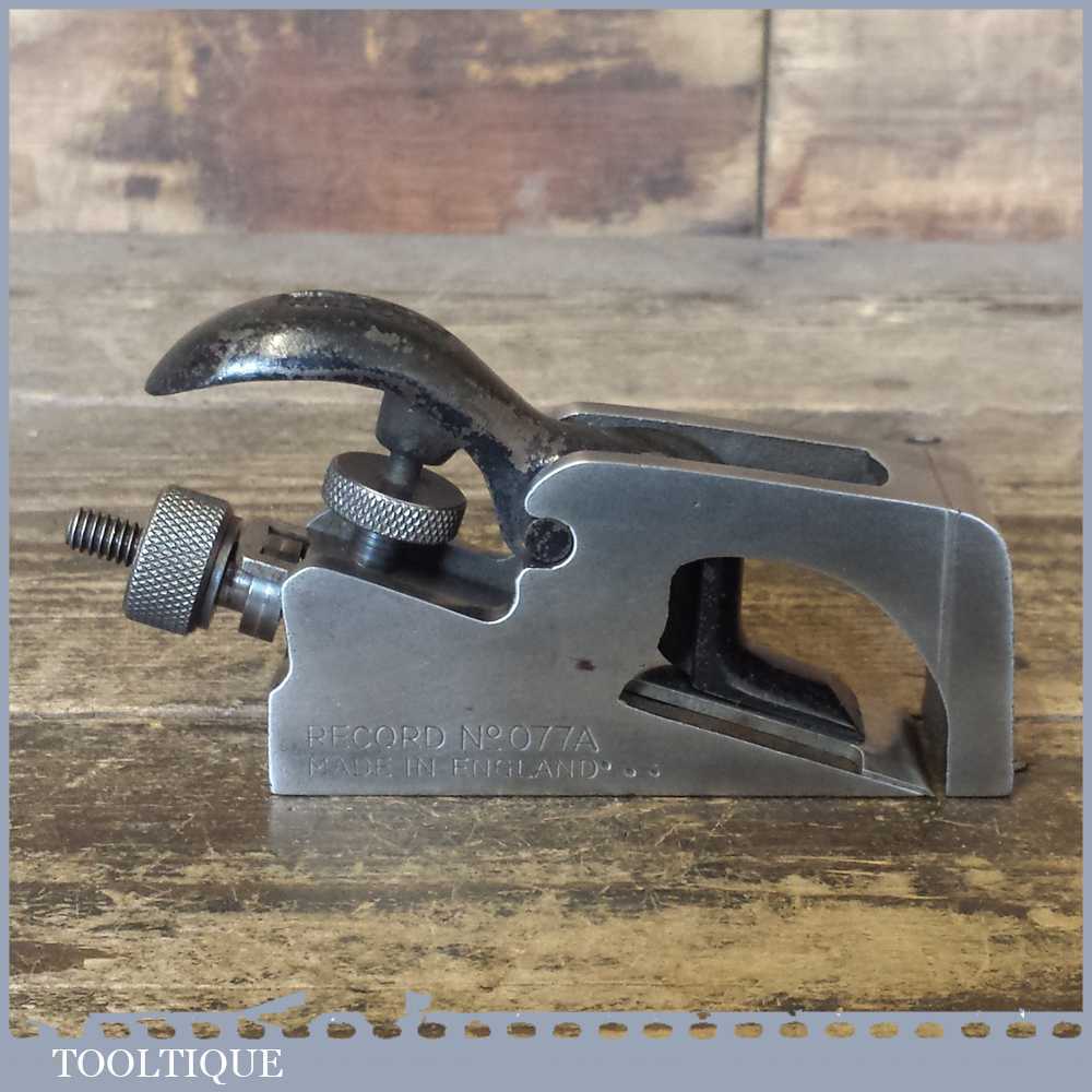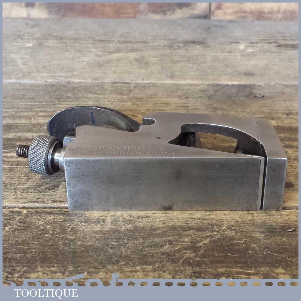 Vintage Record No: 77a bullnose plane in good used condition. Note: The iron is short but still usable but will require replacement at some point in time.