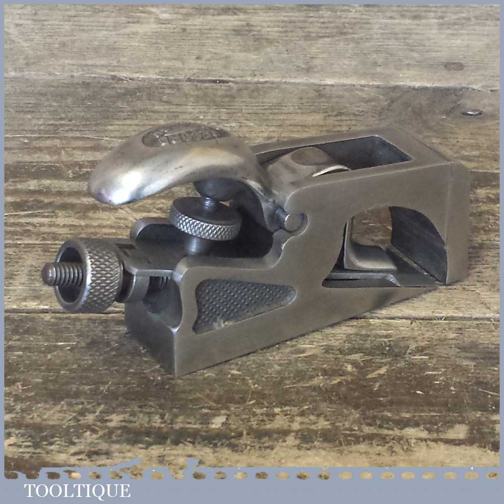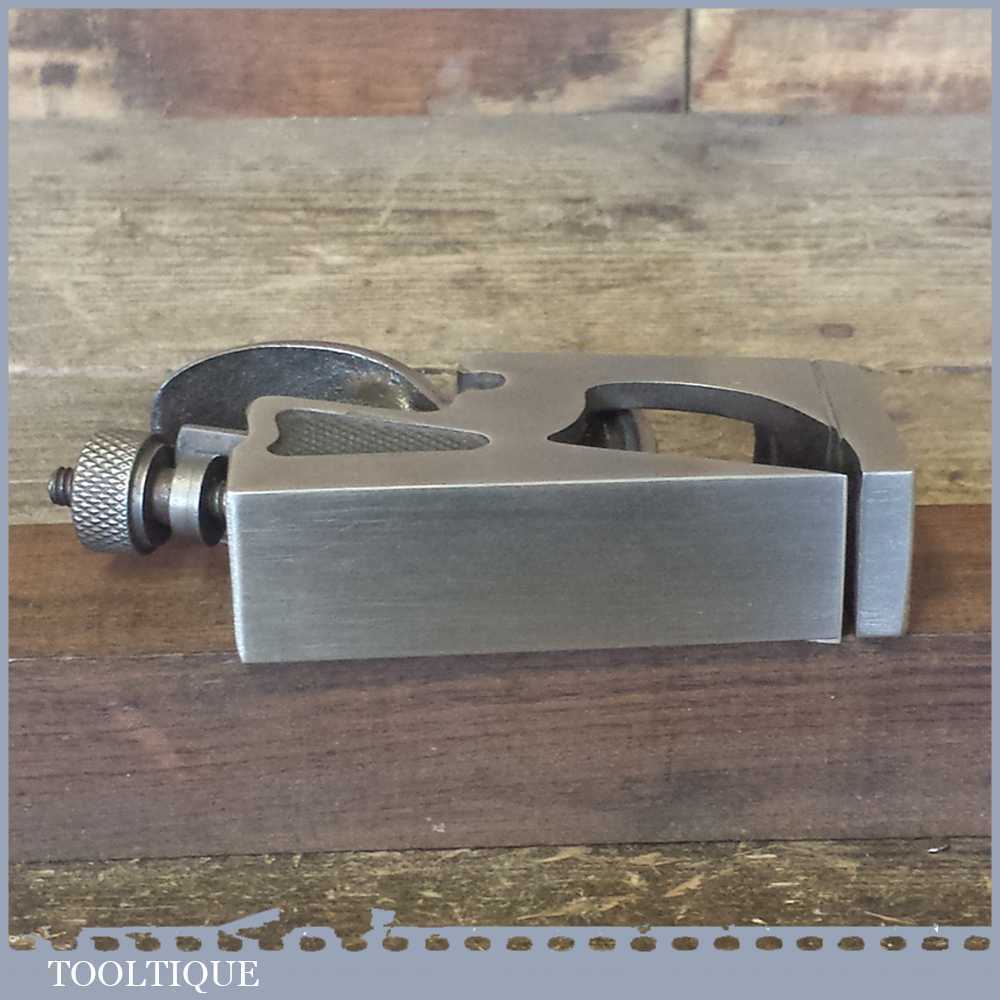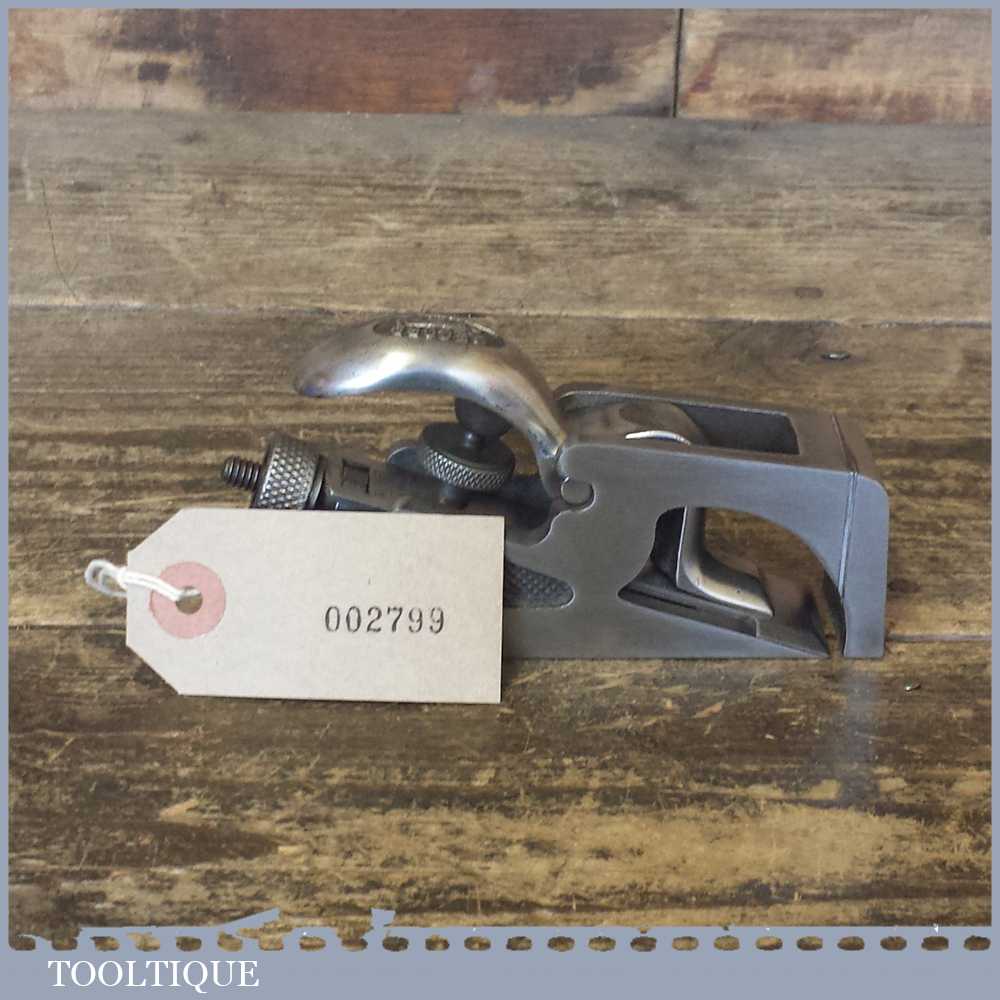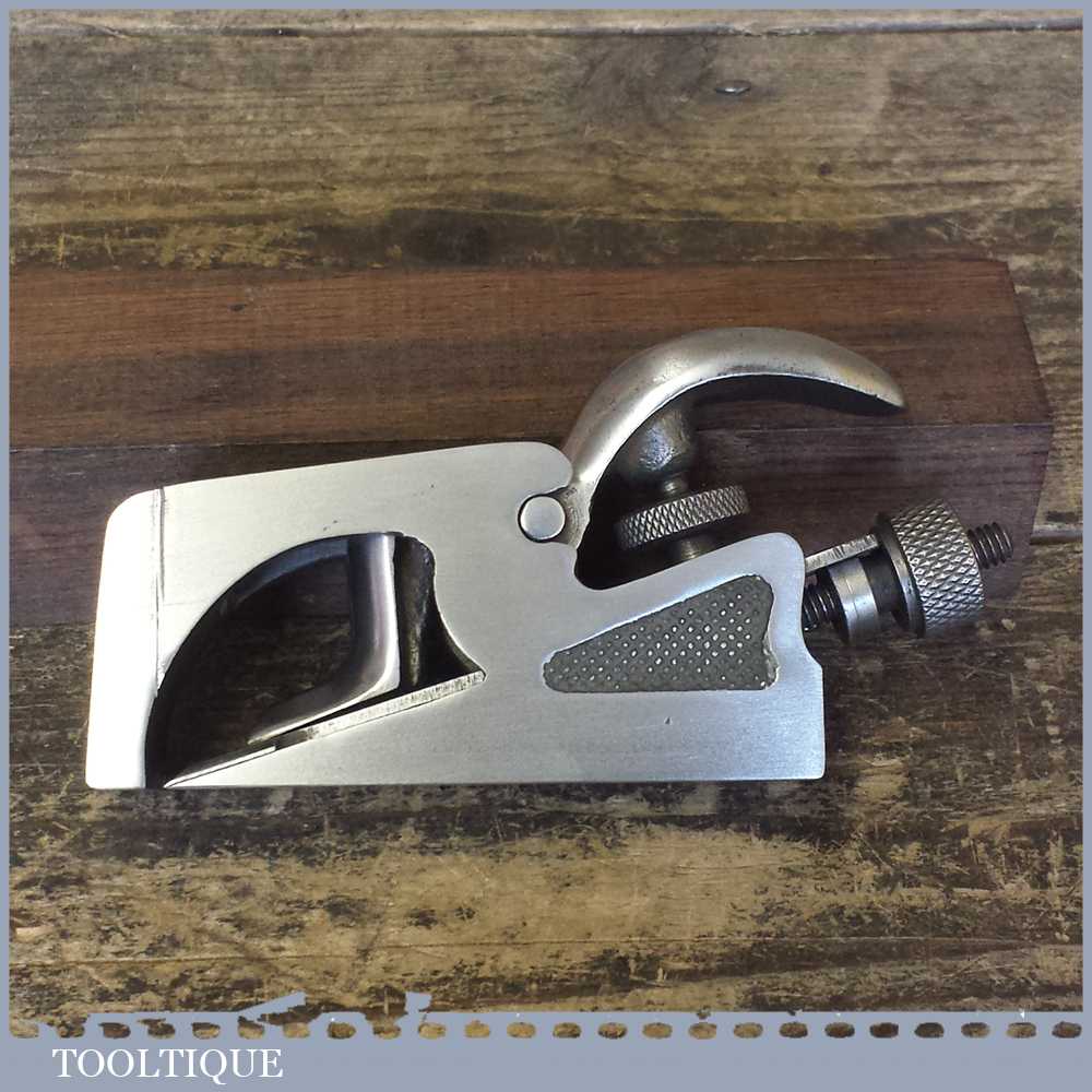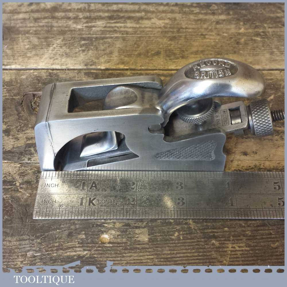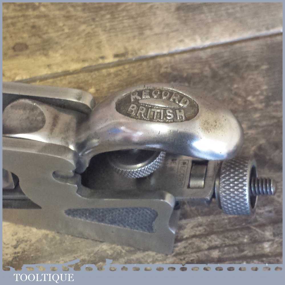 Vintage Record No: 77a bullnose plane made in England, fully refurbished and is sharp ready to use. All components have been thoroughly cleaned to ensure the tool adjusts smoothly. Note: The plane has had all of its patchy and worn nickel coating removed so it can patina gracefully with use and to lap the sole to make it properly flat again.