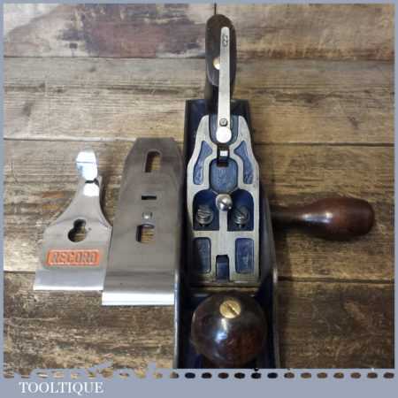 Vintage Record No: T5 technical jack plane, fully refurbished ready to use and in good used condition. Note replacement side handle but has suitably square side for shooting use for right handed person.