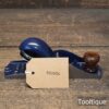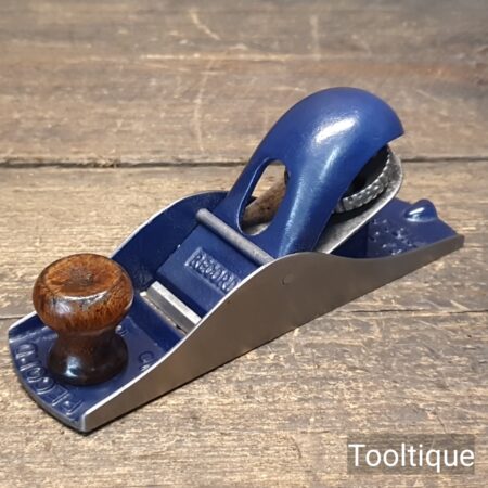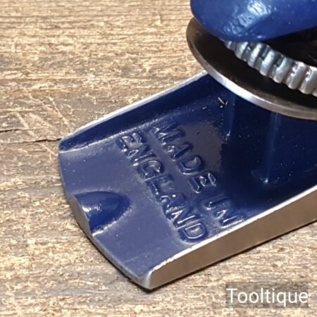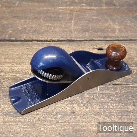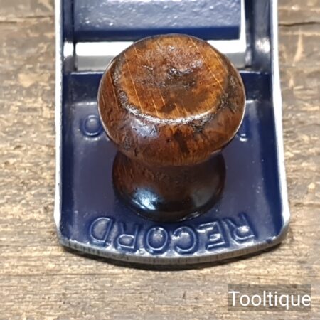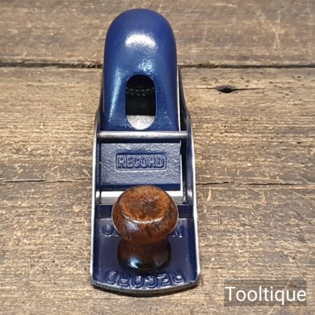 Vintage Record Tools England No: 0110 Block Plane, refurbished ready for use and in good used condition. When refurbishing planes, we do not merely clean them to make them look good, they are restored to a level that ensures this plane is actually ‘in plane to within 0.01mm’ sharpened, honed and all the components are thoroughly cleaned so that they move freely. Our planes are specifically reconditioned to satisfy professional tradesmen who will instantly know the difference between buying one of our planes over general other used ones.