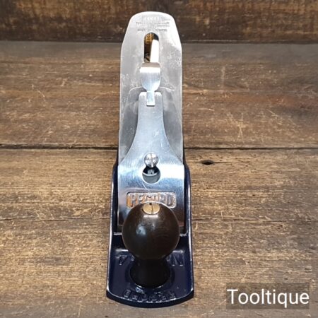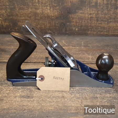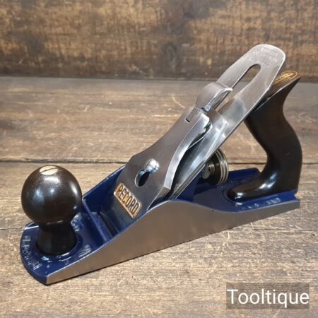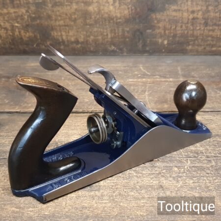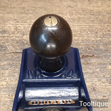 Vintage Record Tools England No: 04 Smoothing Plane with Beechwood Handles, fully refurbished ready for use and in good used condition. When refurbishing planes, we do not merely clean them to make them look good, they are restored to a level that ensures this plane is actually ‘in plane to within 0.02mm’ sharpened, honed and all the components are thoroughly cleaned so that they move freely. Our planes are specifically reconditioned to satisfy professional tradesmen who will instantly know the difference between buying one of our planes over general other used ones.