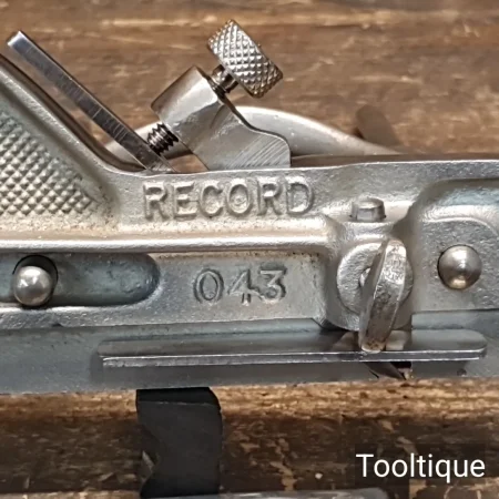 Vintage Record Tools England No: 043 Plough Plane, refurbished ready for use and in good used condition. Note: Adjusts Freely.