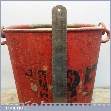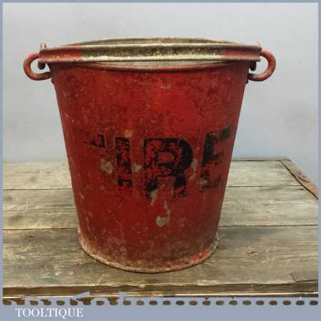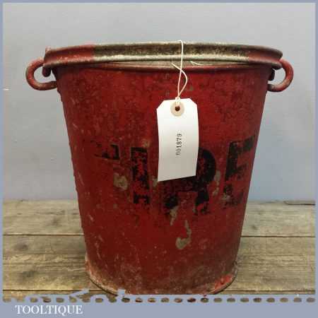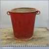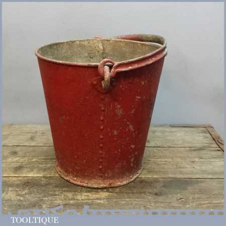 Vintage Red Fire bucket with riveted sides with good original red paint distressed look. Sold as collectable aesthetically pleasing item and has not been tested as waterproof usable item