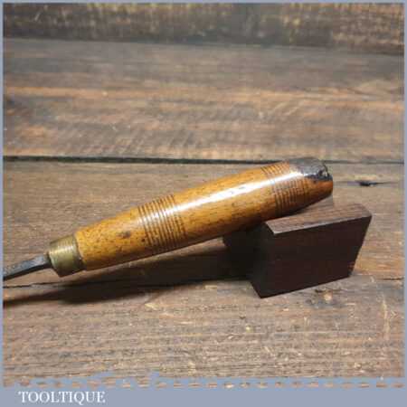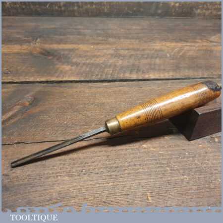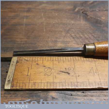 Vintage Reeves & Son Ltd. 3/16” straight wood carving “V” parting chisel with beechwood handle in good used condition, fully refurbished sharpened and honed ready for use. Note: Scorch mark at the top of handle.