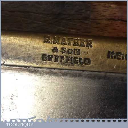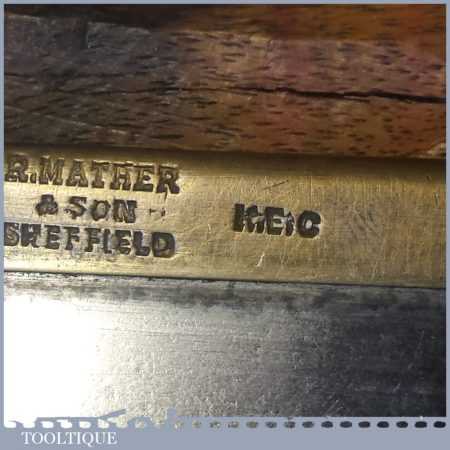 Vintage Richard Mather & Son 5” brass back gentleman’s saw with 15 tpi fully refurbished and sharpened as a rip ready for use. Note: some pitting on the saw plate but sharpened fine.