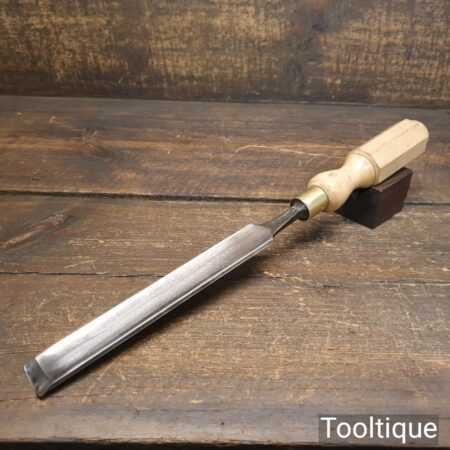 The chisel has been checked to ensure the tang is seated properly and the handle is solid and fit for use. All refurbished chisels are water cooled during the sharpening process to ensure the tempering is not affected.