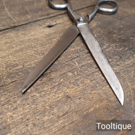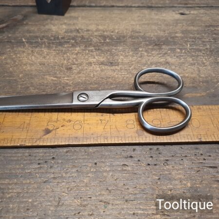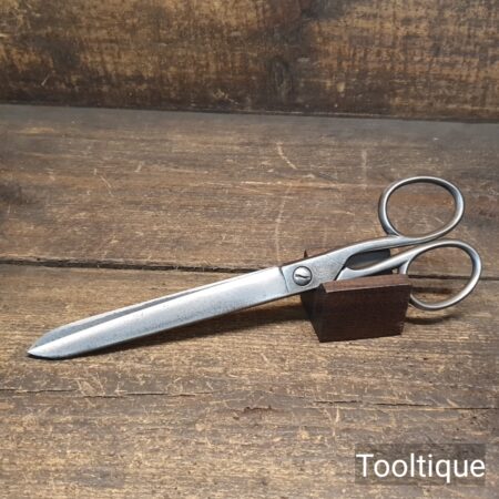 Vintage Ridgely England 10” Wallpaper scissors sharpened ready for use and in good used condition. Note: Smooth action and cut lovely to the tip.