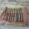 Vintage Ridgeway set of 10 No: double spur screw auger bits ranging between 1/4” – 1” in canvas roll, in good used condition.