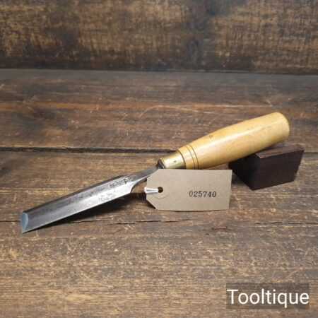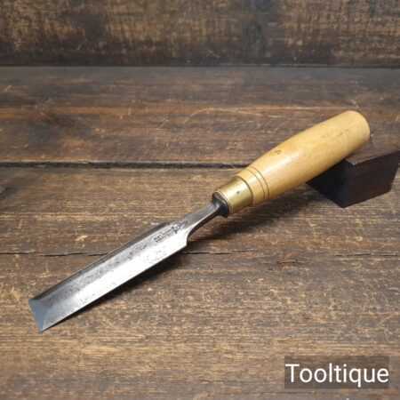The chisel has been checked to ensure the tang is seated properly and the handle is solid and fit for use. All refurbished chisels are water cooled during the sharpening & flattening process to ensure the tempering is not affected