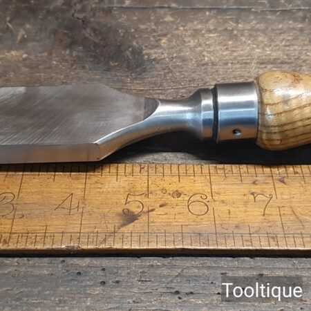 Vintage Robert Sorby 1 ½” heavy duty Framing chisel with a reinforced Ashwood handle, sharpened ready for use and in good little used condition. Note: The hard work of removing the milling marks from the chisel face has been done along its full length. All refurbished chisels are water cooled during the sharpening & flattening process to ensure the tempering is not affected.