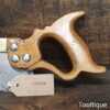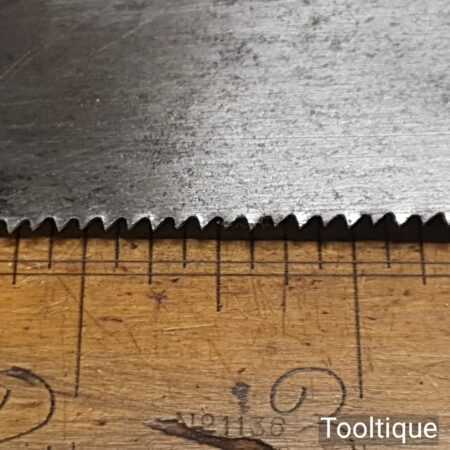 The saw has been thoroughly cleaned, jointed, resharpened, and set by hand so that all the hard work of getting an old vintage saw right has been undertaken. We do this so that the next sharpening is easier and no more than a quick freshen up would be required. Those who are familiar with sharpening will know this is no small job and requires skill, effort, and time to achieve good results.