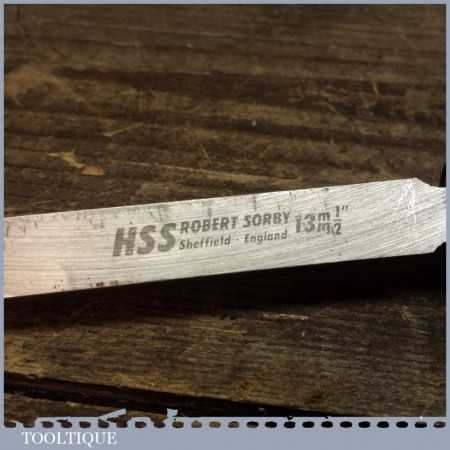 Vintage Robert Sorby 1/2” wide HSS square end chisel for wood turning and is in good used condition.