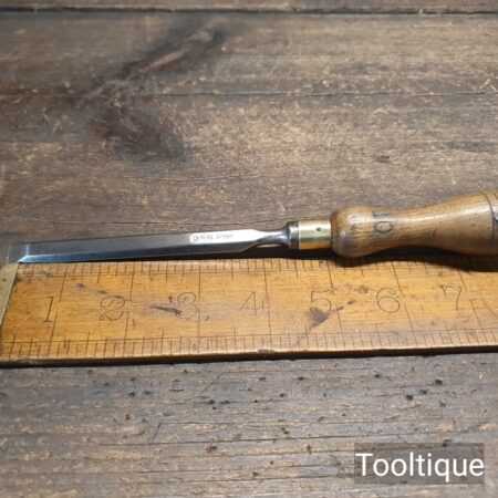 Vintage Robert Sorby 3/8” bevelled edge chisel with an Ashwood Handle, refurbished ready for use and in good used condition. All refurbished chisels are water cooled during the sharpening & Flattening process to ensure the tempering is not affected.