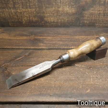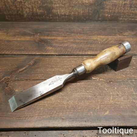The chisel has been checked to ensure the tang is seated properly and the handle is solid and fit for use. All refurbished chisels are water cooled during the sharpening process to ensure the tempering is not affected.
