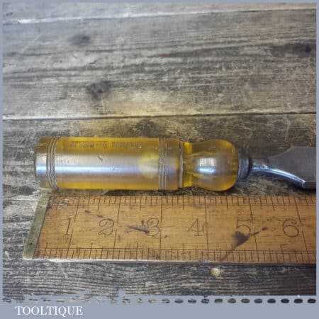 Vintage Robert Sorby carpenter’s 1 ⅛” firmer chisel with plastic handle in good used condition, fully refurbished sharpened and honed ready for use. All refurbished chisels are water cooled during the sharpening process to ensure the tempering is not affected.