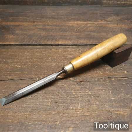 Vintage Robert Sorby carpenter’s 1/2” bevel edge chisel with boxwood handle in good used condition, fully refurbished sharpened and honed ready for use.