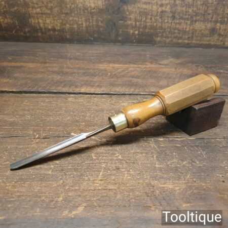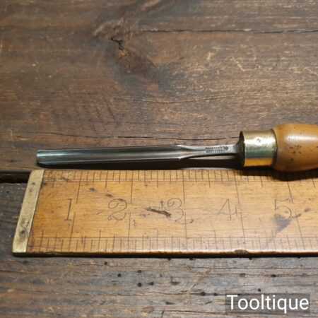 Vintage Robert Sorby carpenter’s 1/4” gouge chisel with London pattern boxwood handle in good used condition, fully refurbished sharpened and honed ready for use.