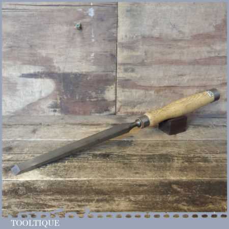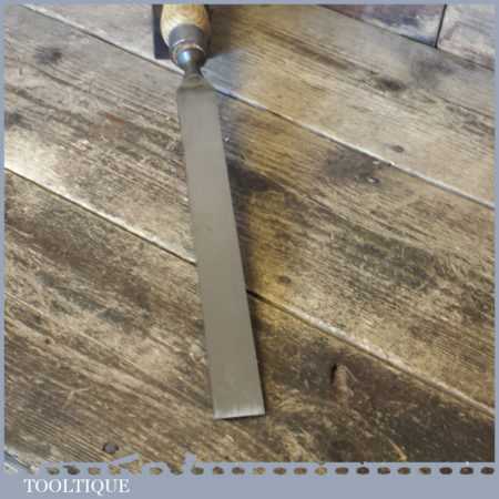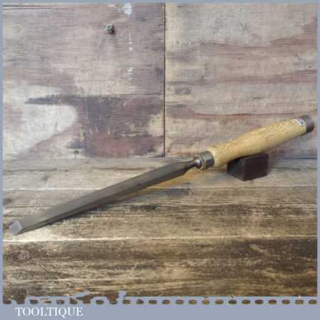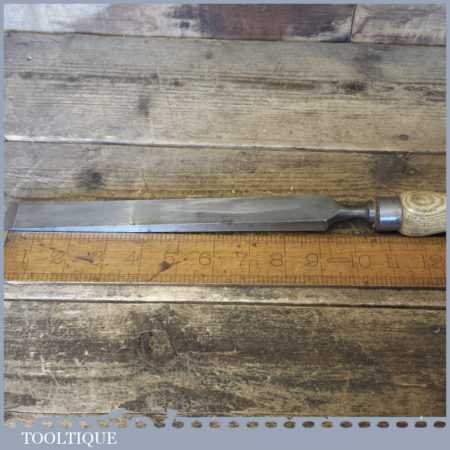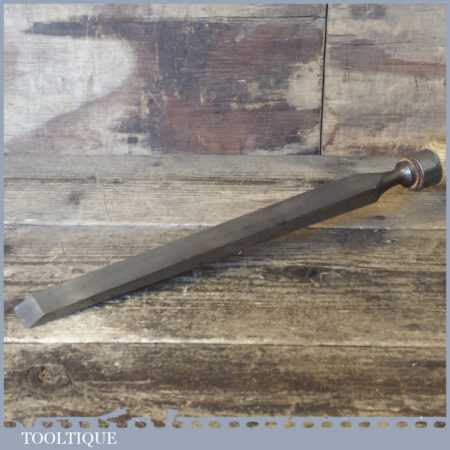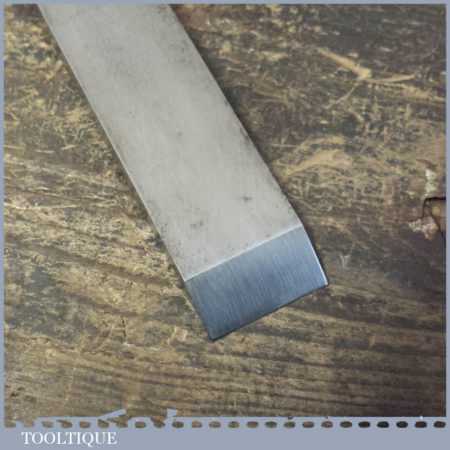 The chisel has been checked to ensure the tang is seated properly and the handle is solid and fit for use. All refurbished chisels are water cooled during the sharpening process to ensure the tempering is not affected. These old cast steel chisels are hand forged and far superior in quality because of the high carbon steel that was used which produces a keener edge, this was also generally used throughout the full length.