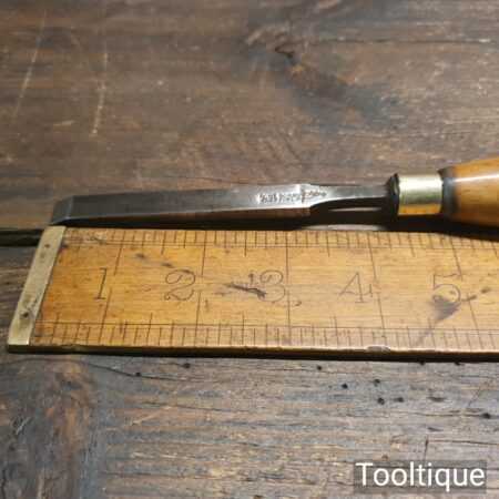 Vintage Robert Sorby carpenter’s 3/8” firmer chisel with boxwood handle in good used condition, fully refurbished sharpened and honed ready for use. Note: The crack in the handle has been resin treated.