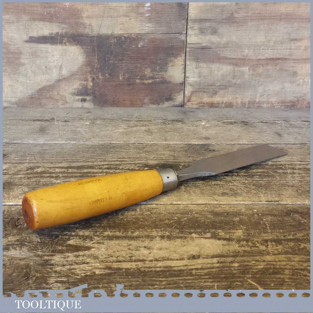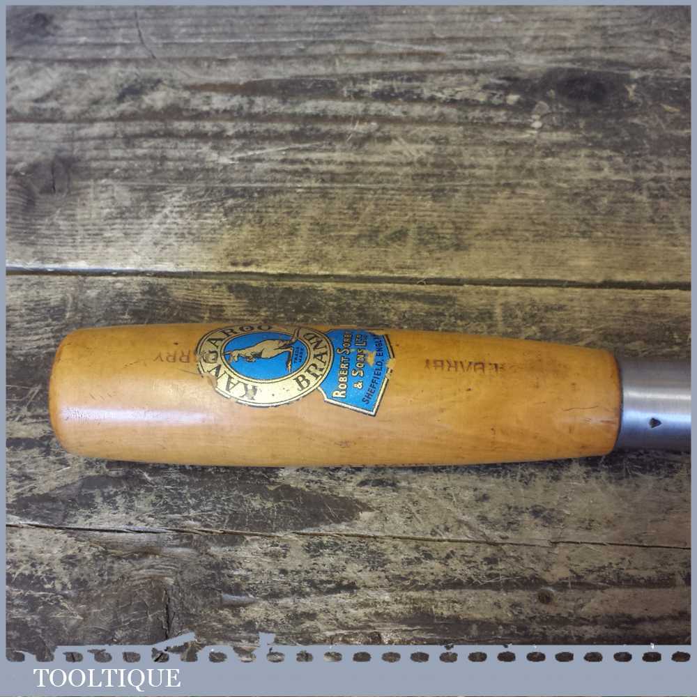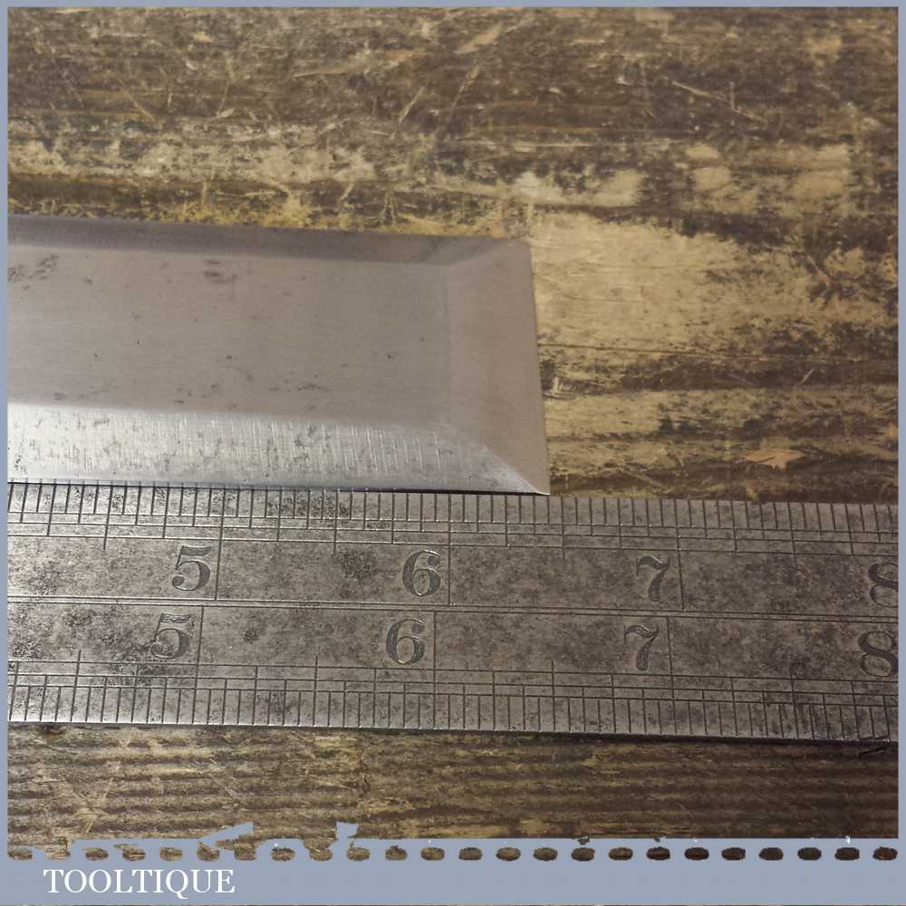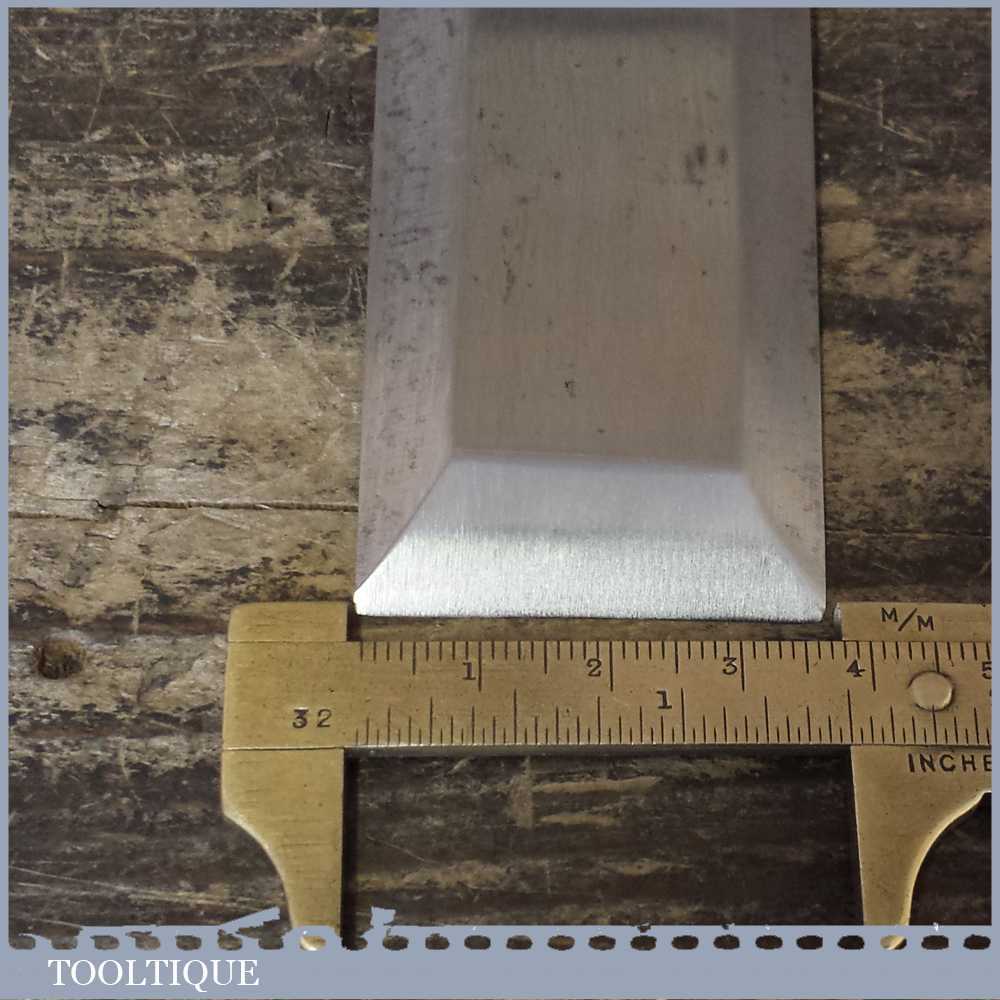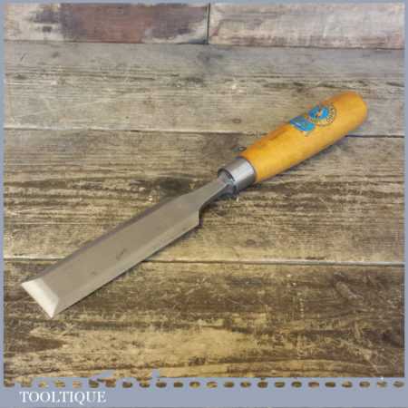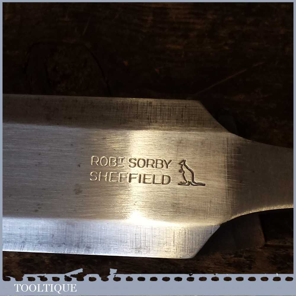 Vintage Robert Sorby (Kangaroo Brand) 1 ½” bevel edge chisel, it has been sharpened and honed ready for use, not that it has seen much in its time. The chisel holds a keen edge and is constructed to a high standard with high carbon steel. Very few manufacturers make tools to this standard nowadays and if they are, this would be reflected in the prices they charge. Note: All the chisels are water cooled during the sharpening process.