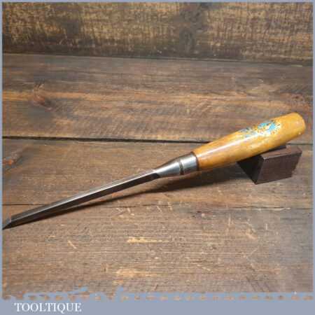Vintage Robert Sorby “kangaroo brand” carpenter’s 1/4” cast steel sash mortice chisel with boxwood handle in good used condition, fully refurbished sharpened and honed ready for use