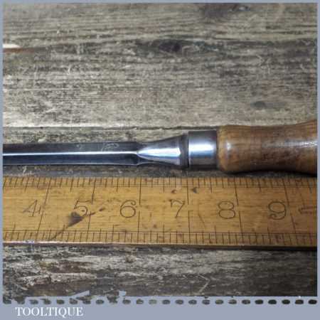 Vintage Robert Sorby “kangaroo brand” carpenter’s 3/8” cast steel sash mortice chisel with reinforced ash handle in good used condition, fully refurbished sharpened and honed ready for use.