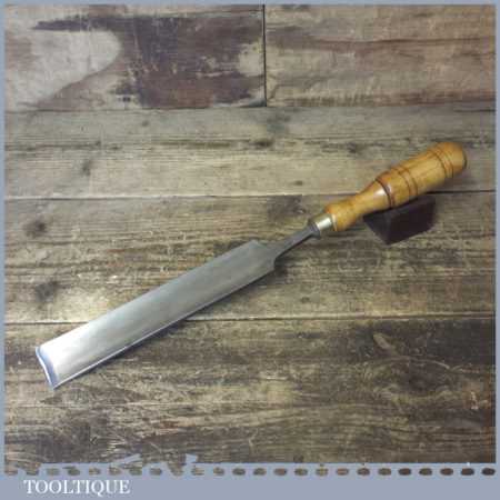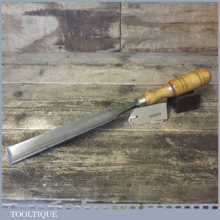 Vintage Robert Sorby pattern makers 1 9⁄16 firmer gouge paring chisel with beechwood handle in good used condition, fully refurbished sharpened and honed ready for use. Note: this has seen little use and is pretty much full length.