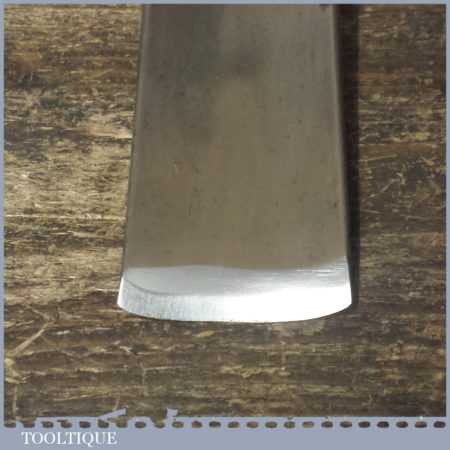 The chisel has been checked to ensure the tang is seated properly and the handle is solid and fit for use. All refurbished chisels are water cooled during the sharpening process to ensure the tempering is not affected. These old cast steel chisels are hand forged and far superior in quality because of the high carbon steel that was used which produces a keener edge, this was also generally used throughout the full length.