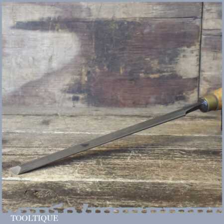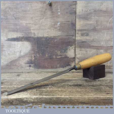 The chisel has been checked to ensure the tang is seated properly and the handle is solid and fit for use. All refurbished chisels are water cooled during the sharpening process to ensure the tempering is not affected. These old cast steel chisels are hand forged and far superior in quality because of the high carbon steel that was used which produces a keener edge, this was also generally used throughout the full length.