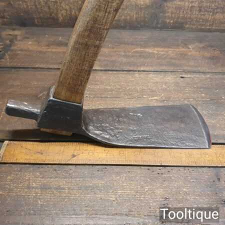 Vintage Robert Sorby shipwright’s adze with 32″ hickory handle, in good used condition, fully refurbished, sharpened and honed ready for use. The adze face has been smoothed off and sharpened (water cooled) to ensure it creates a good clean cut and can be sharpened again with ease.