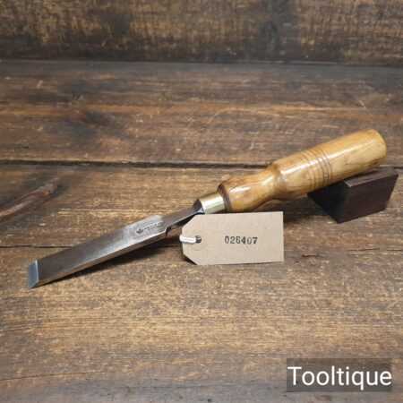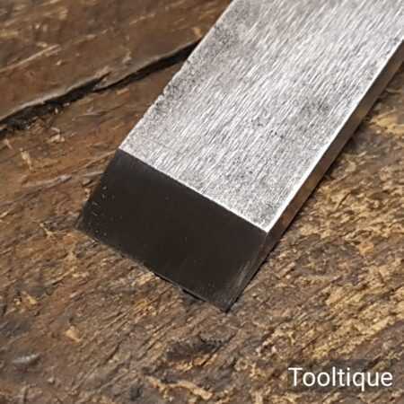 The chisel has been checked to ensure the tang is seated properly and the handle is solid and fit for use. All refurbished chisels are water cooled during the sharpening & flattening process to ensure the tempering is not affected.