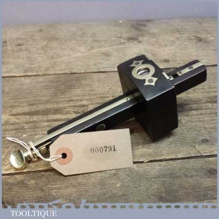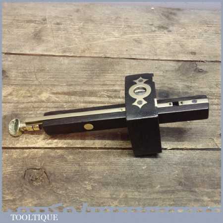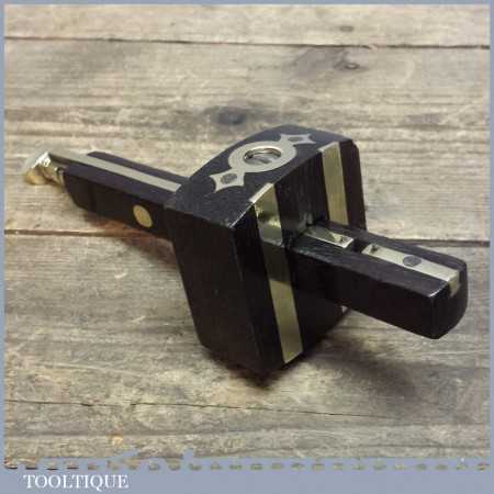 Vintage Rosewood and Brass adjustable mortice gauge in good working order and moves freely. Pins are a bit worn but still have life in them – see images.