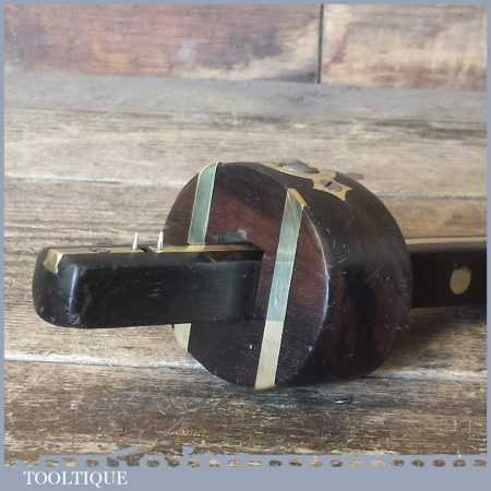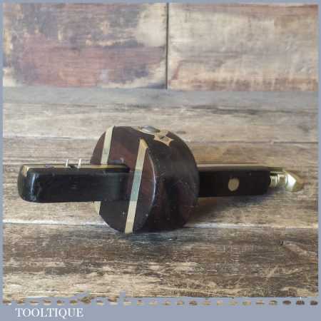 Vintage Rosewood and brass mortice gauge in good used condition which adjusts and moves freely. Note: The hole for the arm isn’t a tight fit like you would expect to see but it tightens up and works fine, it was probably altered as these can get a bit tight