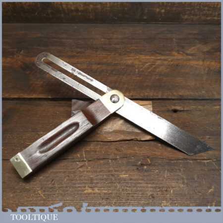 Vintage rosewood and brass quick release, sliding bevel with 10 ½” blade, in good used condition and ready for use.