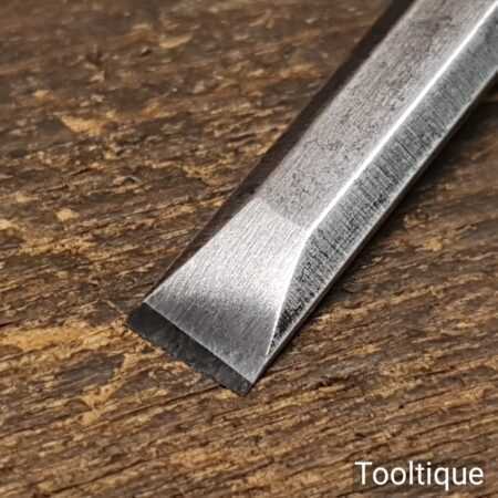 The chisel has been checked to ensure the tang is seated properly and the handle is solid and fit for use. All refurbished chisels are water cooled during the sharpening process to ensure the tempering is not affected.
