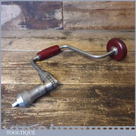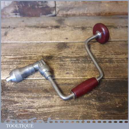 Vintage Ross carpenter’s ratchet brace with beechwood handles and an 11” swing in good used condition, refurbished ready for use.