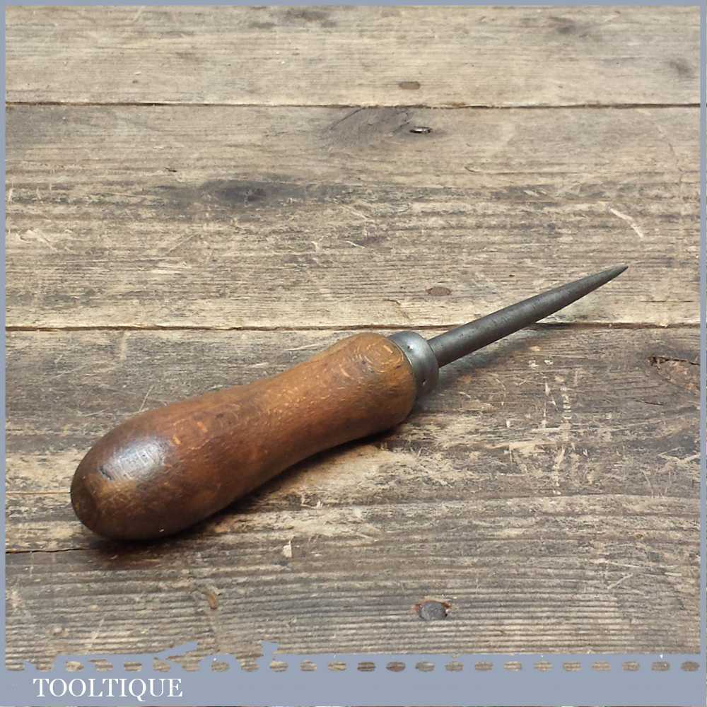 Vintage Round belt awl leather working tool. A stout pointed awl of round cross-section approx 7.2 inches. Overall they are used for opening holes in leather and textile belts to take joint fasteners and in good used condition.
