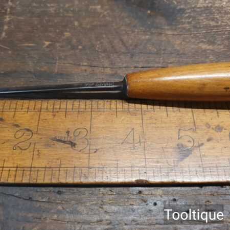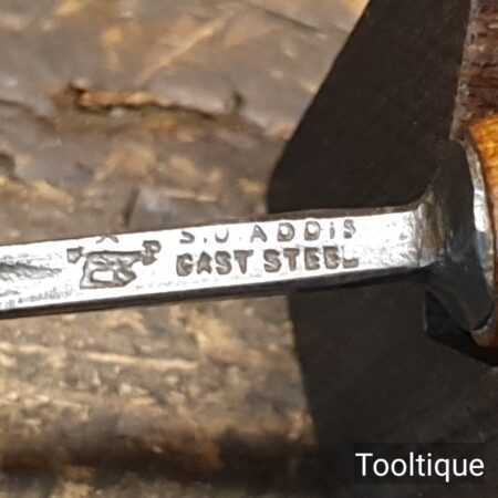 Vintage S.J. Addis ⁵⁄₃₂” Woodcarving gouge chisel with an octagonal beechwood handle in good used condition, fully refurbished sharpened and honed ready for use.