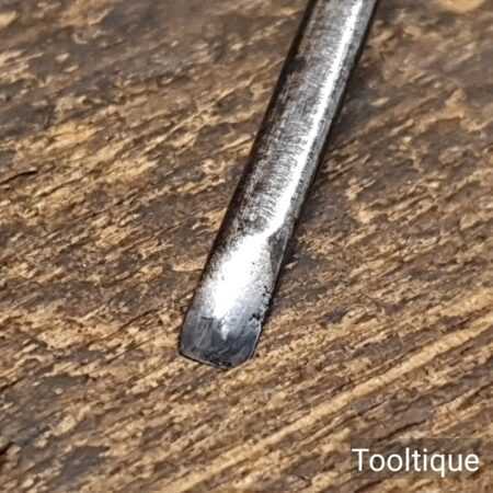 The chisel has been checked to ensure the tang is seated properly and the handle is solid and fit for use. All refurbished chisels are water-cooled during the sharpening process to ensure the tempering is not affected.